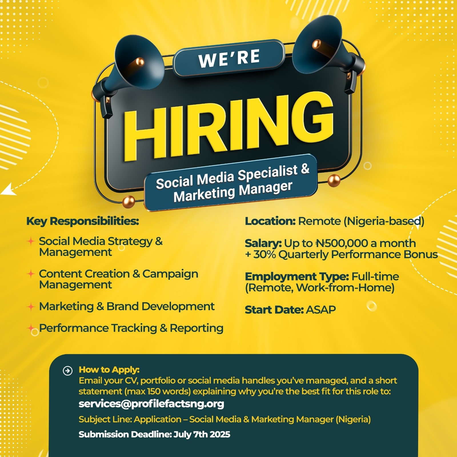 Salary: Up to ₦500,000 a month + 30% Quarterly Performance Bonus